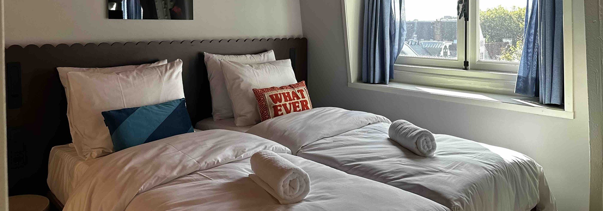 Geniet van comfort en eigentijds design in het hart van Amsterdam. Deze stijlvolle kamer beschikt over een luxueus tweepersoonsbed of twee aparte eenpersoonsbedden – perfect voor stellen, vrienden of collega’s die samen reizen.